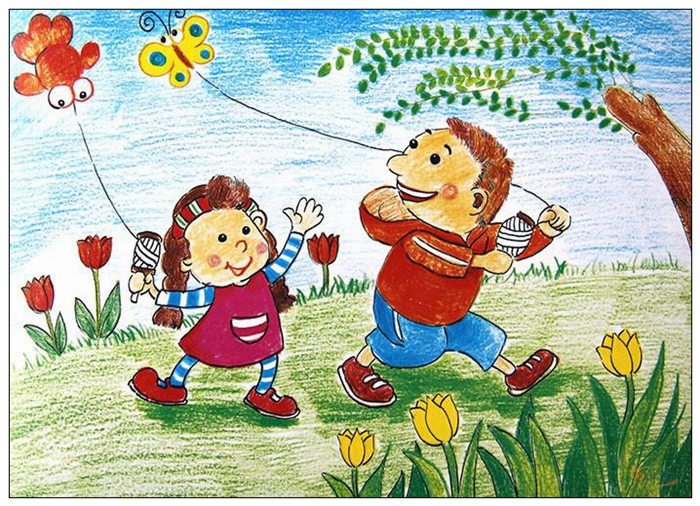 儿童散学归来早,忙趁东风放纸鸢。