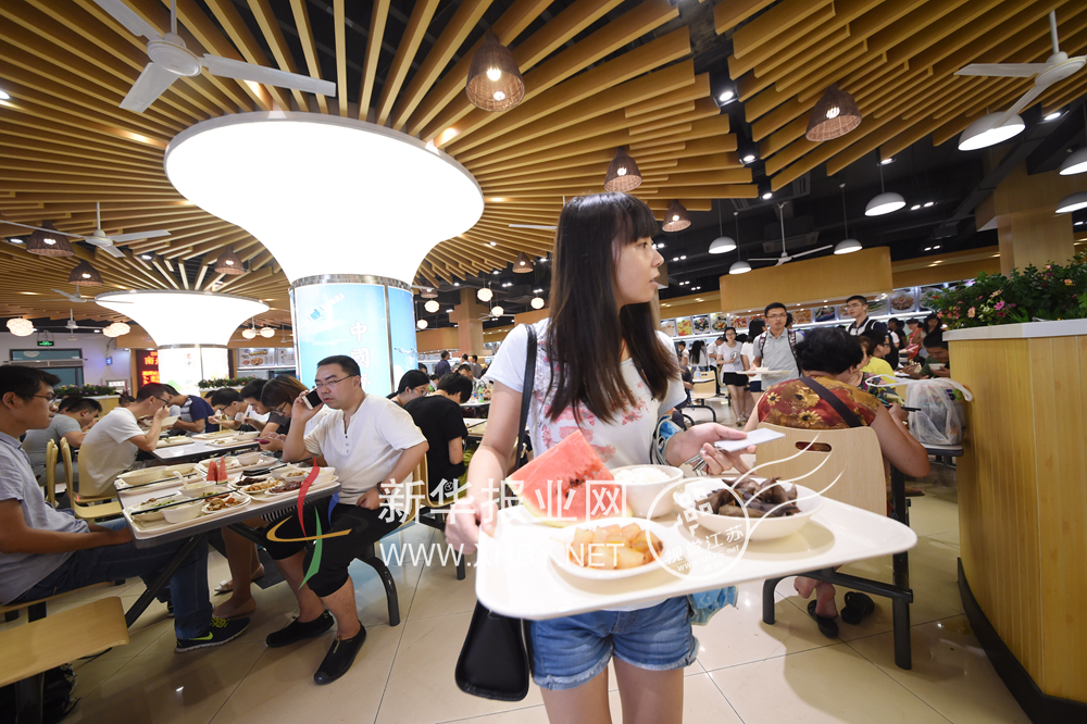 有一种食堂叫别人家的食堂,它不只是“吃饭的地儿”,更是让学生放松、娱乐、交流、沟通的场所,一个专属于学生的多功能区域,它可以根据学生的需要,分分钟钟变身为“英语角”、“咖啡厅”、“图书馆”;昨天,南京航空航天大学新装修的第一食堂引发了微博、微信朋友圈的一片羡慕声潮。 记者在现场看到,该食堂高雅的装修不亚于社会上的连锁餐厅,柔和的吊灯增加了用餐的舒适指数,学生刷卡也不再放在窗口,而是敞开式的付款平台。网上有同学疑虑, “这么高档的场所,我最关心的是菜价是否便宜!”记者现场询问了几个同学,他们都表示,菜价跟过去一样,在南京高校算是比较低廉的。大二一位鲁同学例举说,鸡腿两块五,炒饭三块五,像今日特价菜,青椒香干炒肉丝,只要两块五。不仅菜品便宜,记者看到中餐的品种也特别丰富,有金玉良宵、手指年糕炒培根,生炒牛蛙等100多种菜式。 饮食服务中心主任张焱表示,看到大学生们喜笑颜开,说明暑期赶工的确有必要。”现在的学生不仅仅有吃饱的要求,还有休闲、娱乐等方面需求,以前我们食堂只在饭点开门,现在改造好的餐厅从6点半一直会开到10点,让同学们在里面喝喝咖啡,吃吃西点,来个小讨论,小聚会都没问题,今后我们会更多对食堂进行改进,满足大学生不同的需求”。