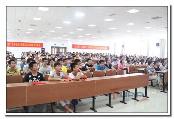 9月2日下午两点半,电子信息工程学院"惜韶华良辰,展壮志宏图" 2015级新生开学典礼暨家长见面会于将军路校区D1213报告厅成功举行。出席本次典礼的有学院党委冯邵红书记,学院常务副院长周建江教授、副院长刘少斌教授、张弓教授,电子科学与技术系主任何小祥副教授、党支部张颖书记、副主任臧春华副教授,院工会主席、信息与通信系副主任黎宁副教授,院团委书记张晓燕老师,院本科教务员岳惠玲老师,以及辅导员老师和全体2015级新生及其家长。本次开学典礼由学院党委副书记王伟华主持。 本次典礼有十个环节。在一段有关学院的宣传片之后,典礼正式开始。首先,由冯邵红书记致辞,亲切朴实地向同学们提出了大学生活的建议,同学们收获良多;然后,由周建江教授讲述学院概况,对学院的简况、师资队伍、人才培养、学科平台等方面进行了介绍,并且提到了21世纪对人才的要求,激励同学们未来努力为中国科技事业奋斗;接下来,张弓教授向同学们介绍了学院的专业情况与培优班选拔情况,使同学们对学院的信息有了更加细致的了解。 第四个环节,由学院学生会主席2013级学生丁娅文同学发言,学姐的亲切的问候与期望让同学们对大学生活更加憧憬;之后,由新生代表李福康同学发言,展现着新生们对未来的美好希望与理想。接下来,大家全体起立,进行新生宣誓,许下庄重的誓言;宣誓完毕后奏唱校歌,伴着校歌的结束,全体2015级新生放飞了承载着梦想的纸飞机,预示着大学生活的正式开始。