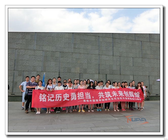 ![]() 在纪念馆附近的小广场上,研究生同学们就参观感想进行了简要的分享,大家在感受到压抑、屈辱的同时,无不感慨今日国家的和平发展机遇来之不易,更要倍加珍惜在美丽校园学习科研的宝贵时光。作为外语专业的研究生,面对日本右翼一再篡改历史,“南京大屠杀”的真相反复被部分别有用心的国家抹黑,更需要肩负自身责任,学好专业知识,做好跨文化交际的使者,让世界更好的认知这段历史,更好的认识当代中国。