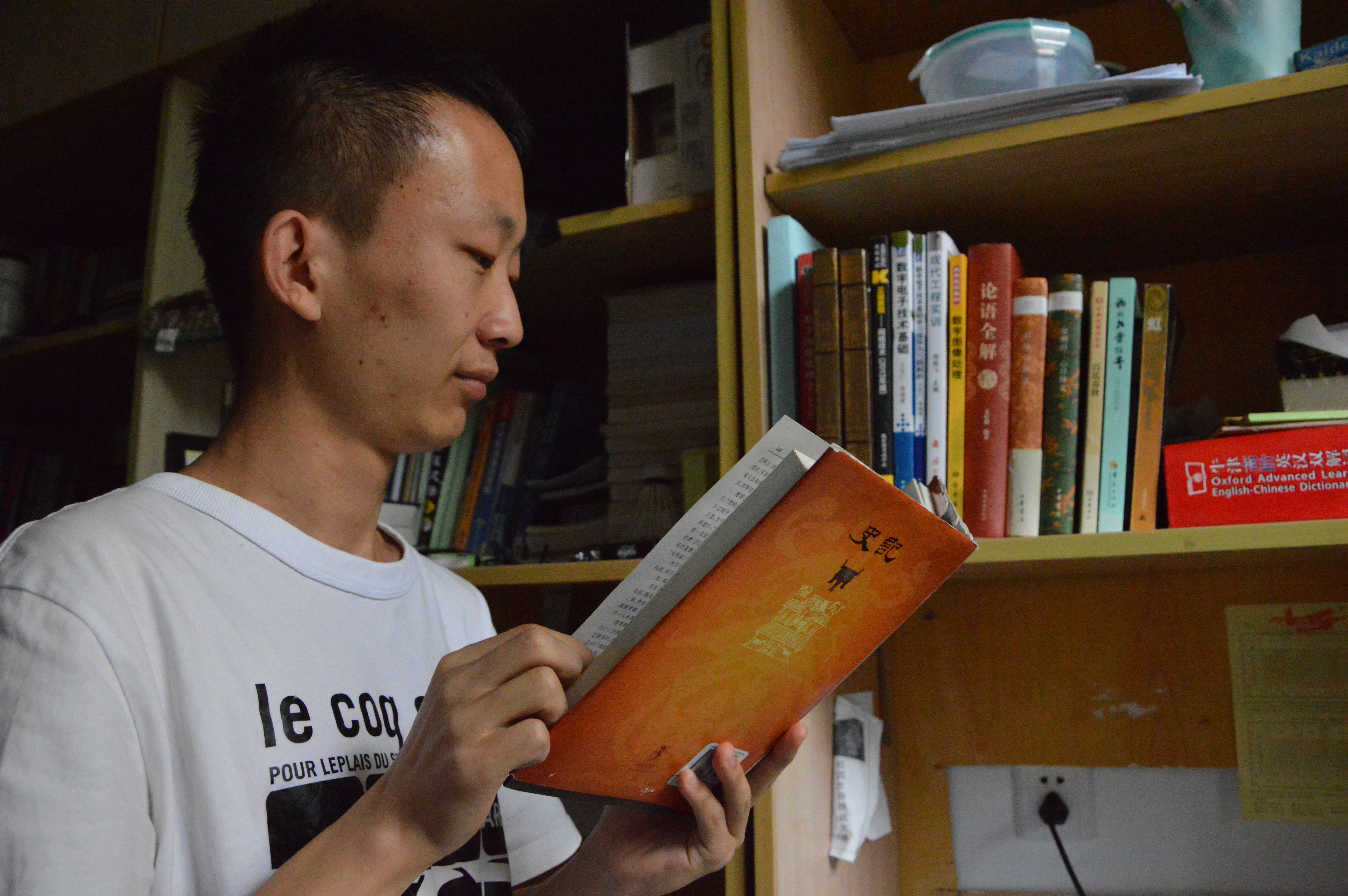 因为有着对古诗文的浓厚兴趣,韩锋的书架上堆满了一本本古文书籍:《诗经》、《道德经》、《史记》、《大学》等等,无一例外都是没有注释的,都是通过翻阅《古汉语常用字字典》一字一句地“啃”下来。字典里大大小小的折痕,都是用来给他看到字词解释里引用的经典语句做的标注。 韩锋告诉记者自己读书的一个小窍门,“我很喜欢看历史题材的影视剧,曾经一边看《大秦帝国》,一边对着看《史记》,在同一条时间线上同时看书本和影视剧,很有意思。”