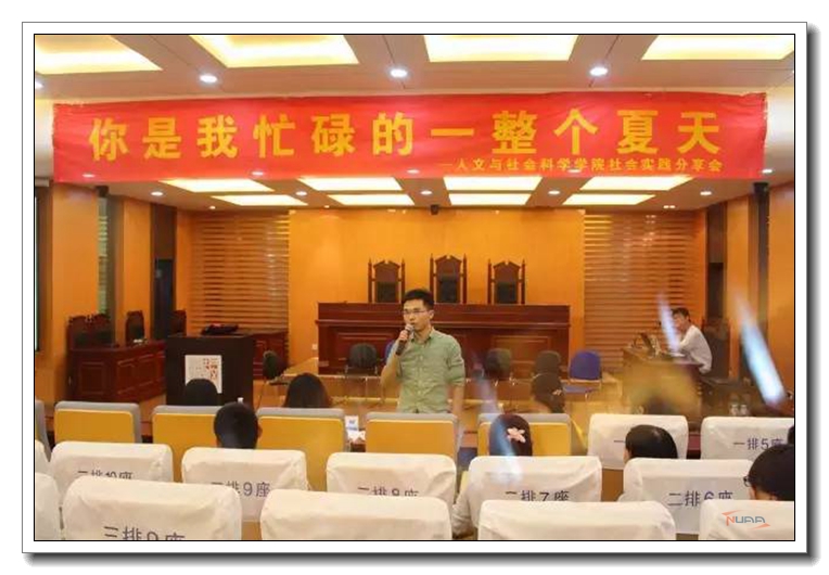 一句句催人奋进的话语,一段段精彩绝伦的故事,一阵阵经久不息的掌声……7月22日晚,南航人文与社会科学学院暑期社会实践悦享会暨公共事业管理专业第一课在我院模拟法庭举行,校团委副书记张亚丽、计算机科学与技术学院团委书记阙愚、人文与社会科学学院公共事业管理系老师武小龙、校团委老师吕晶淼以及我院13级、14级、15级本科生参加了本次活动。