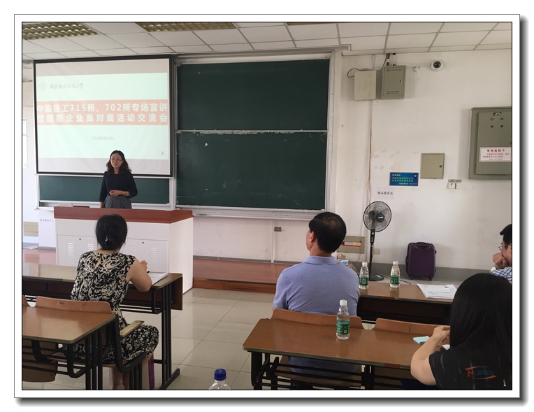 此外,计算机学院于9月22日在将军路校区举办了一场杭州中船重工集团七一五所专场“国防面对面”报告会暨现场招聘会。中船重工第七一五研究所人力资源部主任刘上发、招聘主管戴志春、计算机学院党委副书记王霄参加了此次报告会。会上,由王霄书记先将杭州地区国防面对面活动做了总体介绍,七一五所刘主任和戴主管分别对中船重工集体情况做了介绍,并表示中船重工集团下属企业和研究所欢迎南航学子投身国防、前往就业。最后,计算机学院研究生黄火荣作为学生代表发言,谈了此次杭州国防面对面的收获和感受,更吸引了现场同学纷纷投上简历,与研究所招聘负责人现场沟通,自荐。