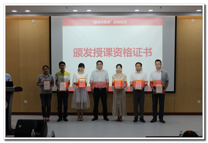 启动仪式上,陈夏初为“辅导员微课”顾问经济与管理学院刘益平教授,马克思主义学院王翔老师,心理健康教育中心主任杨雪花副教授,生涯发展研究中心主任、学生处就业指导部部长沈雪萍副教授颁发了聘书。四位老师分别担任创业教育、思想政治教育、心理健康教育、职业生涯规划四个方向的顾问。学生处副处长张鹏为自动化学院韩楚等六位“辅导员微课”讲师代表颁发了授课资格证书。 仪式最后,陈夏初发表讲话,强调“辅导员微课”的主要使命和意义在于聚焦学生素质能力培养,鼓励学生擅于思辨、敢于质疑、乐于表达,让学生在课堂中体会到哲学、体会到艺术、体会到文化,追求全面而自由的发展,而不仅仅局限于某方面知识的传授。