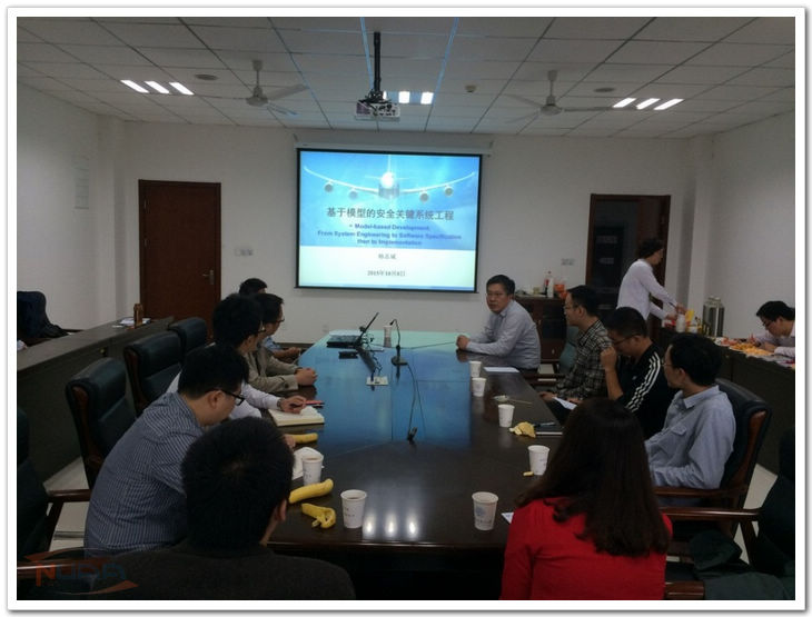 杨志斌作题为《基于模型的安全关键系统工程》的报告,他主要介绍航空领域软件工程方面从安全需求到基于模型的解决方案。参会教师结合自身研究方向进行了交流和讨论。