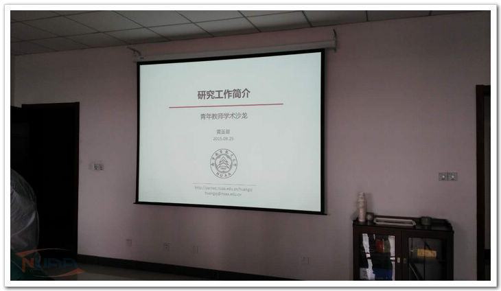 黄圣君做主讲,他主要介绍了机器学习的背景知识、博士期间到现在的主要工作及自己在主动学习方面的预期研究思路。随后,每位参会教师分别介绍自己的研究方向,并结合报告内容提出了与自身研究方向可交叉结合的想法。大家就发表高水平论文和基金申请的问题展开交流讨论,气氛非常热烈,从中午12点开始一直持续到14点,很多教师意犹未尽。