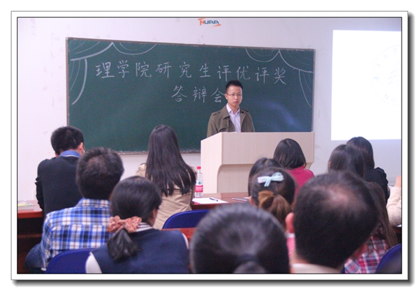 10月12日下午,理学院2015年研究生评优评奖答辩会在学院506教室召开,理学院副院长刘友文、王春武、院党委副书记王静、数学系老师唐月红、物理系老师杨浩组成评审组团参加答辩,2015级研究生到场参加。 ![]() 答辩会上,2名博士和10名硕士候选人结合PPT,全面介绍了个人的思想状况、阶段科研进展、学术成就、社会工作等各个方面的情况。他们潜心学术,专于科研,开拓创新,就读期间发表了数篇SCI论文等高质量论文,他们的成绩赢得了在场师生的赞叹。评审老师结合答辩情况,进行现场提问和给出宝贵的建议。与会学生纷纷表示,通过参与答辩会,强烈感受到学院评审工作的公开、透明,从这些优秀学长学姐的身上学到了严谨踏实认真的科研精神,也进一步明确自己研究生阶段的规划和任务。 ![]() 据悉,理学院研究生奖学金的评选工作一直受到学院的高度重视,专门成立了院评审工作领导小组,多次开会研讨并修订了《理学院研究生奖学金评审细则》。初评阶段领导小组对材料的真实性、有效性进行严格审核,学生按照最终得分情况取从高到低1:2进入复评环节。复评采用公开答辩方式,现场打分、现场汇总、并予以一周公示,保证了评选工作的公开、公正、透明。 |