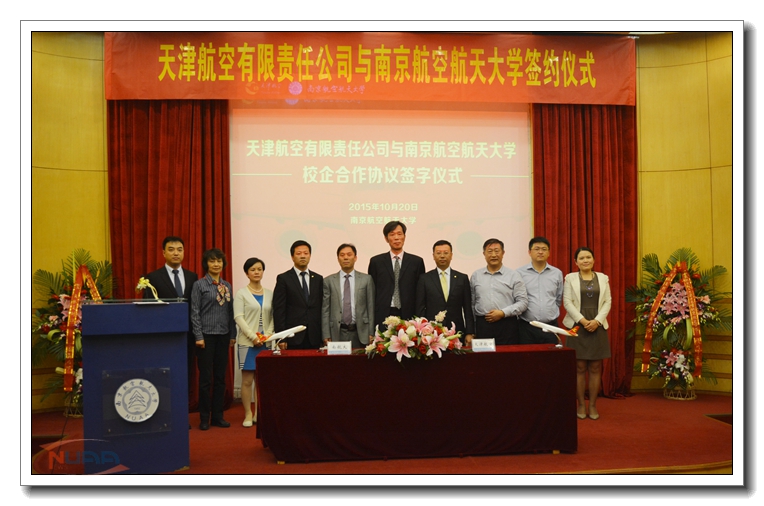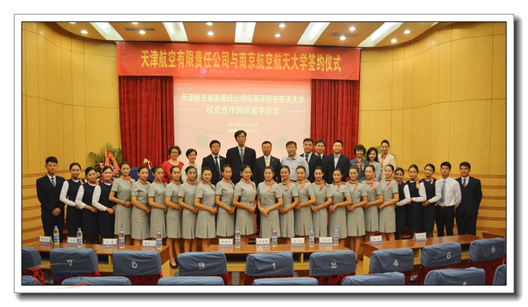 2015年10月20日下午,天津航空有限责任公司(下简称“天津航空”)与我校继续教育学院在明故宫校区逸夫科学馆举行校企合作协议签订仪式。天津航空人资行政部总经理文戈、客舱服务部总经理樊东川、人才招募中心经理张笑寒、我校学生处副处长兼就业指导中心主任许爱华、继续教育学院院长杜传锋、院党委书记聂东林、副院长王萌、院党委副书记涂志宏、知金教育总裁袁江、知金教育航空项目事业部总经理沈春颖出席仪式。签字仪式由“航空服务”专业教员刘雪竹老师主持。