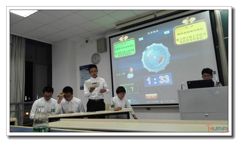 10月23日晚上7点,理学院“新生杯”辩论赛在将军路校区D1202教室顺利举办。理学院团委王亚鹏、辅导员黄博伟和理学院2015级本科生到场参加。活动还特别邀请了各学院辩论队队长作为嘉宾参加。 ![]() 在辩论赛开始前,2014级辩论队成员带来一场以“高校熄灯制度是否合理”为辩题的表演赛。随后,围绕“能力更大的人是否应当承担更大的责任”这一主题,理学实验班战胜光电信息科学与工程班开展辩论。决赛采用新华辩赛制。双方围绕主题进行了针锋相对的驳论环节,对辩题中的“应当”一词提出了各自不同的主客观理解。到了三辩的质询环节时,双方辩手质疑问难,场上出现了相持不下的局面。“白热化”的自由辩论阶段双方更是打得难分难舍,台下观众也欢呼不断。整场辩论结束后的观众提问环节大家纷纷发言,全场气氛十分热烈。 比赛结束,经过四位校辩论队成员即本场比赛评委的争执讨论后,决定判反方胜出,并评选出来最佳辩手。民航飞行学院院辩论队队长对整场比赛作出了点评。最后嘉宾为理学实验班和最佳辩手颁奖,比赛在观众的掌声中完美落幕。 ![]() |