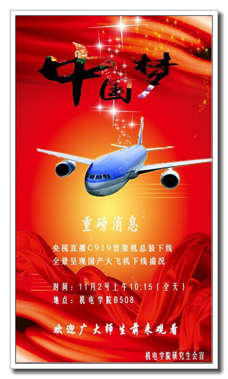 11月2日上午10时15分,我国自主研制的C919大型客机在经历了近90个月的研制之后,终于揭开了神秘的面纱。怀揣着对航空事业的满腔热情,机电学院师生在15号楼B508会议室集体观看了C919下线盛况。 ![]() 随着商用飞机总装车间内两扇帷幕缓缓拉开,一架带有“商飞蓝”和“商飞绿”涂装的新型商用飞机完美的展现在我们面前,这正是我国自主研制的C919大型客机,在经历了7年的研制生产后,首架机终于进入了地面试验的状态。这一阶段性重大成果的取得燃起了南航人心中浓浓的航空报国情。C919大型客机研制的背后和南航、和机电学院都有着千丝万缕的联系。学院部分导师的课题就有与C919相关的项目,学生通过参与相关课题研究投入到项目的研发中,也在内心播下了志在长空,翱翔蓝天的航空梦。学院更有部分毕业生身体力行,加入商用飞机等相关研制单位工作,直接为首架自主研制的大飞机献才献力。 ![]() 制造业是国民经济的主体,是立国之本、兴国之器、强国之基。随着中国制造2025规划的颁布,学院师生更加意识到了国家赋予自己的责任。观看完毕后,学生们纷纷表示“作为南航人,看到C919的正式下线充满了感动和感谢,感动于祖国航空事业的日益强大,感谢于代代南航人为航空事业付出的心血。”相信机电学子一定会不辱使命,在研究学习中夯实专业知识,强化专业技能,将自己航空梦与爱国情怀化为奋斗的动力,为未来航空业、祖国的制造梦贡献力量! ![]() |