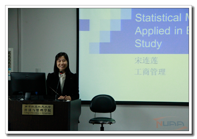 10月28号中午12点,在经管院楼706,“经管青年教师学术沙龙”推出第五期。本期的主讲人是工商管理系讲师宋连莲。教务处副处长朱建军、院党委书记焦宏图以及学院引进的青年教师等20多人参加了此次学术讨论。沙龙由周志鹏老师主持。 主持人简单介绍宋连莲的学术背景后,宋老师开始做学术报告《统计模型与行为研究》。整场报告幽默风趣,她用简单易懂的实例说明复杂的理论模型,使得听众都报告都充满兴趣。报告后,与会老师展开了热烈的讨论。 会后,徐海燕老师邀请宋连莲老师择日为她的学生们做一次报告。学术交流的大大促进了老师们之间的交流和合作。 ![]() ![]() ![]() 宋连莲,生于1987年,安徽蚌埠人。毕业于中国科学技术大学-香港城市大学联合培养项目。毕业后获两校的博士学位。研究方向为统计建模,市场营销,运行管理。 |