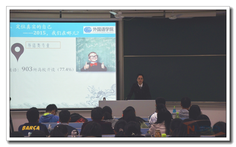 10月28日,外国语学院2015级第一次素质能力导航课“2019,我们去往哪儿”在D1102教室开课。学院党委副书记庞小燕为同学开讲,所有2015级新生参加了此次导航课。 庞小燕以视频《你大四了》引入主题“2019,我们去往哪儿”,结合学生关心的毕业去向问题从三个方面进行讲述。第一,定位真实的自己:2015,我们在哪儿。从定位于“南航”;定位于“外语类专业”和定位自身特点三方面入手,让学生了解自己面临的机遇与挑战,了解自身特点与潜力,为定位未来做准备;第二,定位远方的目标:2019,我们去哪儿。用学院13届毕业生视频让学生了解一届毕业生的主要去向,用学院优秀毕业生事例梳理多条关于未来发展的典型参考路线,引导学生树立自己未来的发展目标。第三,梦想导航:2015-2019,我们在路上。从“是什么”、“为什么”和“怎么做”三方面介绍素质能力培养方案,介绍学院重点提升的“学习能力”、“表达能力”和“国际视野”三项素质能力指标。 学院后期为加强学生的自主参与意识,学生将分组开展十二项素质能力指标海报宣讲、解读研讨。同时,紧密围绕学院“外语人才素质能力提升工程”,营造全员育人氛围,积极为学生搭建素质能力培养平台,实现学院人才培养目标。 ![]() |
