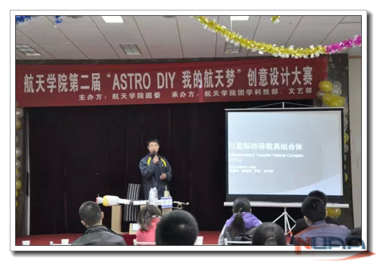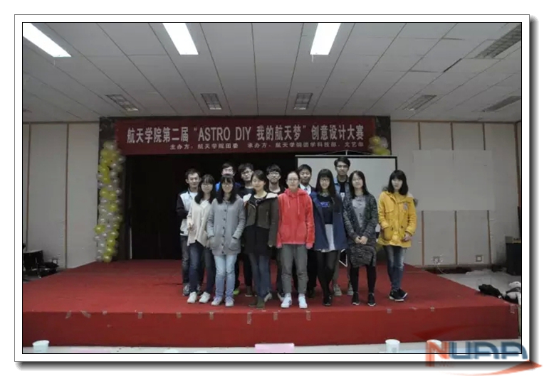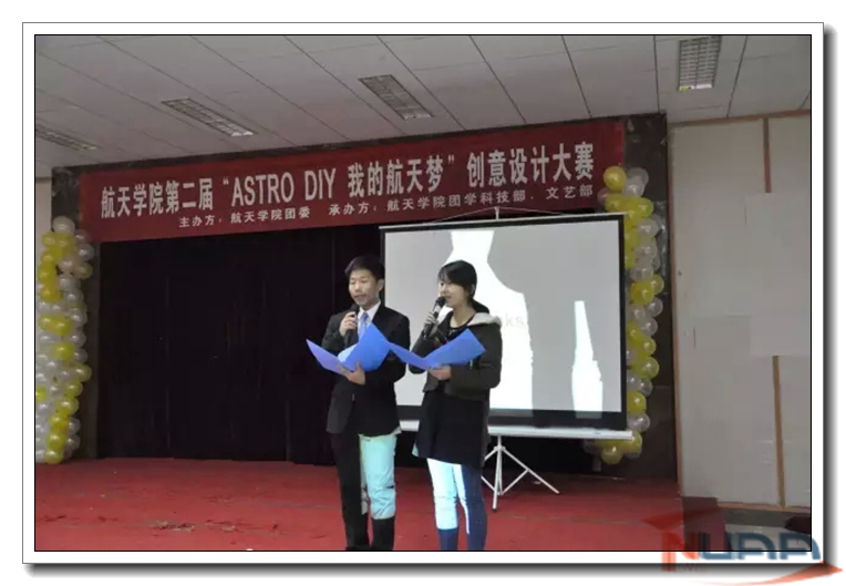 11月9日晚,第二届航天学院”ASTRO DIY 我的航天梦”创意设计大赛决赛,在南京航空航天大学江宁校区艺术中心二楼多功能厅成功举办。大赛由陈家驹、张琼月支持,现场邀请到了航天学院14、15级辅导员刘洁老师,以及各院科协主席担任评委,经过初赛角逐,共12支队伍参加决赛。 ![]() 本届大赛共103位同学,28支队伍报名,经过激烈的竞争,共12支队伍杀进决赛,在决赛中,各队伍都展示出自己的作品最精彩的部分。