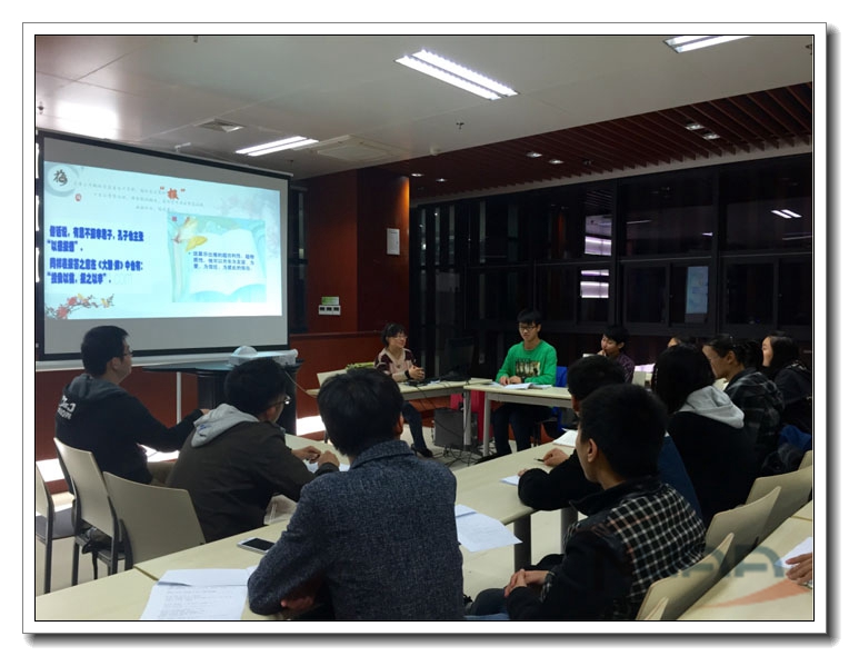 11月13日晚,“佳文诵读”活动在将军路校区图书馆六楼读者活动中心成功举办,本次活动由“佳文诵读”小组主办,图书馆馆员王茜老师、“佳文诵读”小组成员以及图书馆学生助理参加了此次活动。 ![]() 本次活动的主题是“诗经诵读”和对“吐槽考试”的话题讨论。在“诗经诵读”环节,王茜老师带领成员诵读诗经《卫风》里的《伯兮》、《河广》、《木瓜》等经典诗篇,在王老师的讲解下,成员们理解了古诗所表达的含义以及其中精妙的表达方式,领略了中华传统文化的高雅古趣。之后的“吐槽考试”环节中,佳文诵读小组成员分享了蔡元培老先生就职北大校长演说的内容,重点解读了蔡老劝诫世人深刻地审视自己为何而读书的内容。成员们对读书的目的、考试制度以及我国当前的教育方式纷纷发表意见,并深入地讨论了关于农村学生与城镇学生的差别,提出了减小两者之间差距最本质的办法就是国家在农村的教育力度加大,减小两者教育资源差距。在此次活动中,同学们畅所欲言,各抒己见。 ![]() 王老师对此次活动进行了总结,她对此次活动的成效表示满意,希望同学们在大学里把主动权握在自己的手里,主动去学习,积极去实践。 ![]() 此次活动的目的在于加强图书馆学生助理之间的理解和沟通,熟悉图书馆馆藏,利用图书馆丰富多彩的人文资源加强自身的文化素质修养,以更好地为读者服务。