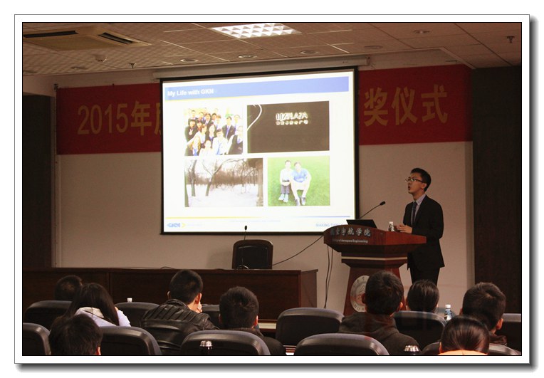 12月1日,航空宇航学院于明故宫校区18号楼529报告厅举行2015年度吉凯恩奖学金颁奖仪式。吉凯恩(中国)投资有限公司(以下简称“吉凯恩”)中国公共事务及沟通总监孙剑、航宇亚太区业务发展总监顾永康、航宇工程师许江波,航空宇航学院副院长沈星等出席了仪式。 ![]() 首先,颁奖仪式主持人,航空宇航学院本科毕业班辅导员许俊勇对历年吉凯恩奖学金的评选情况进行了介绍。今年已是吉凯恩资助航空宇航学院优秀学子的第五年,自2011年以来共有54名品学兼优的学生和6支学生团队获得奖励。 ![]() 随后,孙剑先生对吉凯恩公司的全球战略规划以及发展情况作了介绍,公司发展势头强劲,近期又对欧洲老牌航空企业荷兰福克科技完成收购。之后,顾永康先生对吉凯恩航宇的业务情况进行了阐述,公司近年与波音、空客、罗罗公司的合作非常密切,产品得到用户的一致认可;在国内公司与中航哈飞、上飞公司的合作也愈加密切,公司欢迎更多优秀的航空人才加入其中。