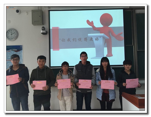 12月15日下午,理学院在江宁校区D1102教室举行“新生杯”演讲比赛,2015级本科生到场参加。理学院数学系教师任凤丽、15级辅导员王亚鹏、黄博伟及各班班长担任了评委。 ![]() 参赛者们依次按抽签顺序,分别结合勇气、自信、信任等多个关键词进行演讲。或激昂高亢,或幽默诙谐,或内涵深刻,同学们的精彩的演讲带动了全场气氛,现场不断传来阵阵喝彩。比赛共决出了特等奖一名,一等奖二名,三等奖三名,王亚鹏为各位获奖选手颁发了奖状。比赛最后,任凤丽为大家做精彩点评,并鼓励同学们要勇敢自信,把握机会,提高表达能力。 ![]() 本次比赛为同学们提供了一个展现自我的舞台,锻炼了大家的语言表达能力,更增进了同学们之间的交流,展现了15级本科生昂扬向上的精神风貌。 ![]()