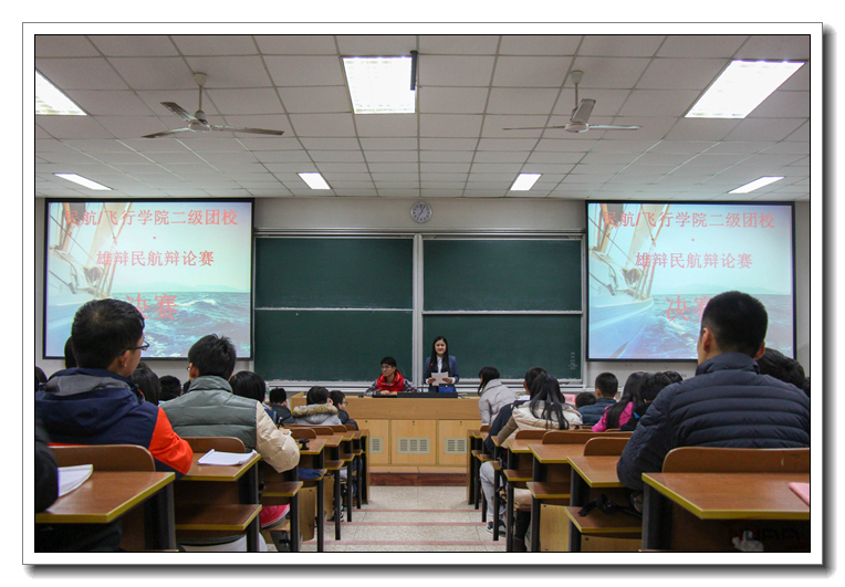 11月28日下午,八支队伍两两对决,其中七班、二班、八班、三班四个班级代表队从初赛中脱颖而出,进入决赛,并分别编为正方上、下议院,反方上、下议院。辩论赛巅峰之战于 12月6日晚正式上演。民航学院15级辅导员张秋寒老师、飞行学院15级辅导员陈雨童老师、校辩论队优秀辩手以及各班导师率领团校学员到场观战。4支队伍就“当今中国民航业更需要研究型人才还是技术性人才”这一话题进行了激烈探讨。