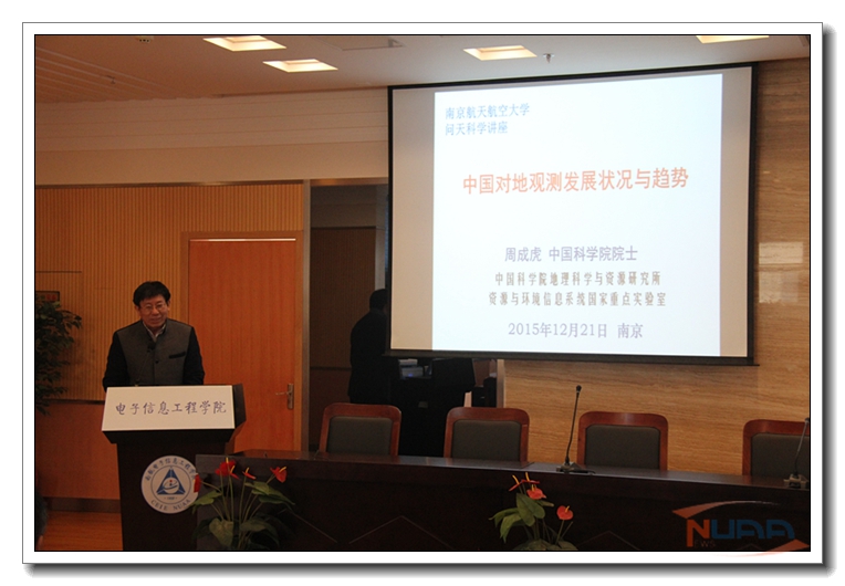 2015年12月21日,中国科学院院士、中国科学院地理科学与资源研究所研究员,地理信息系统与遥感应用专家周成虎教授应航天学院邀请来我校访学,并以《中国对地观测发展状况与趋势》为主题做了学术报告。报告会由校长助理熊克主持,航天学院及电子信息工程学院的教师、学生参加了此次报告会。 ![]() 周院士从中国卫星遥感平台的起步讲起,深入浅出的概括了近五十年来中国对地观测体系与航天遥感取得成果,并从气象卫星、资源卫星、海洋卫星和微小卫星等中国正在迅速发展的卫星体系,指出了当前的主要技术瓶颈和发展趋势,对航天遥感与信息技术的研究发展具有启发意义。 ![]() 最后,师生们踊跃发言和提问,就报告内容进行了详细探讨,聆听报告的师生纷纷表示受益匪浅,并对周院士精彩的报告报以热烈的掌声。 ![]() 学院还组织了相关专业的教师和周院士进行了座谈,交流了我院目前相关学科的科研情况和进展,以寻求后期双方在卫星遥感领域的合作。活动结束后,周院士在院士林种下了一棵海棠树并勉励学生在以后的学习中能够发奋图强,在自己擅长的领域有所贡献。 此次学术交流活动加强了双方在相关学科的联系,对于今后开展学术交流以及合作研究将起到积极的促进作用。 ![]() 周成虎,中国科学院院士、中国科学院地理科学与资源研究所研究员,地理信息系统与遥感应用专家。现任中国科学院地理科学与资源研究所副所长,中国科学院苏州地理信息与文化科技产业基地研究院院长。兼任中国科学院资源与环境信息系统国家重点实验室主任、中国地理学会水文专业委员会主任委员、《遥感学报》、《地理研究》、《地球信息科学》等杂志编委、中国地理学会环境遥感分会副理事长、中国GIS协会第一专业委员会主任、中国地理学会水文专业委员会主任、国家863海洋领域专家组专家、国家遥感中心专家、国土资源部特邀名誉专员。 |