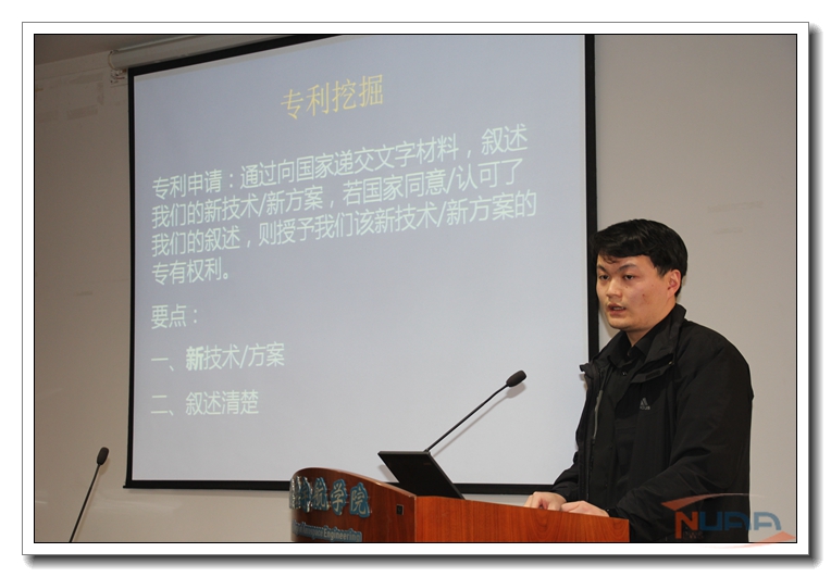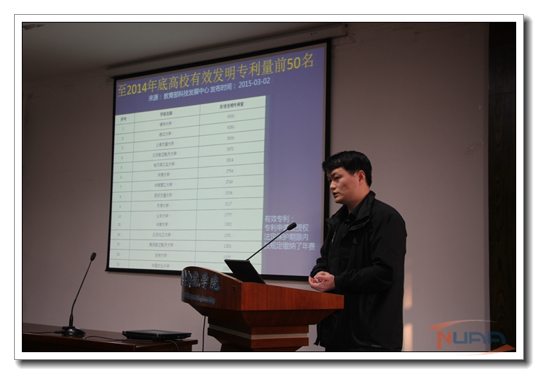 作为学校专利改革试点学院,航空宇航学院大力推进《项目管理及学生培养过程中的专利培育管理》专利改革项目开展。2015年12月14日下午学院科研办举办了专利知识培训。
