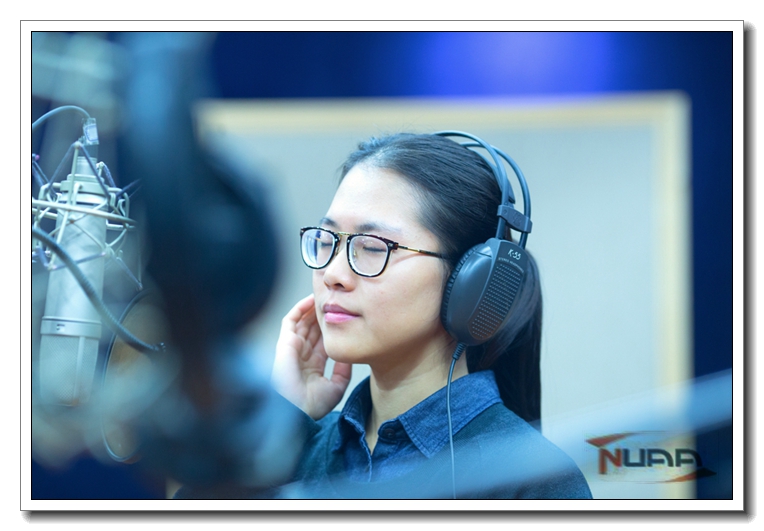 歌曲的演唱在专业录音棚内完成,并由艺术学院音乐学硕士研究生张昕宇同学完成混音等后期工作,“录制歌曲花了两个小时左右吧,先录的歌曲的主干部分,然后我加了一些和声和伴奏部分上去,这样歌曲才完整。”张欣宇是艺术学院研三的学生,目前在南京一家音乐公司做歌曲制作。