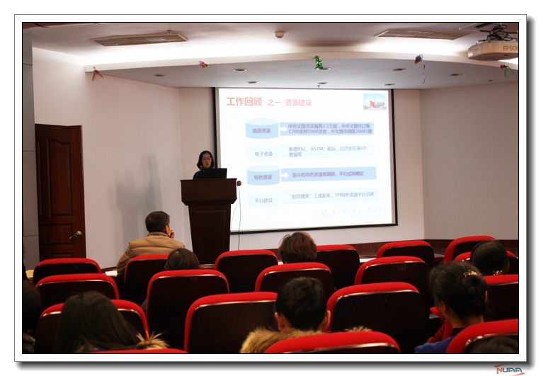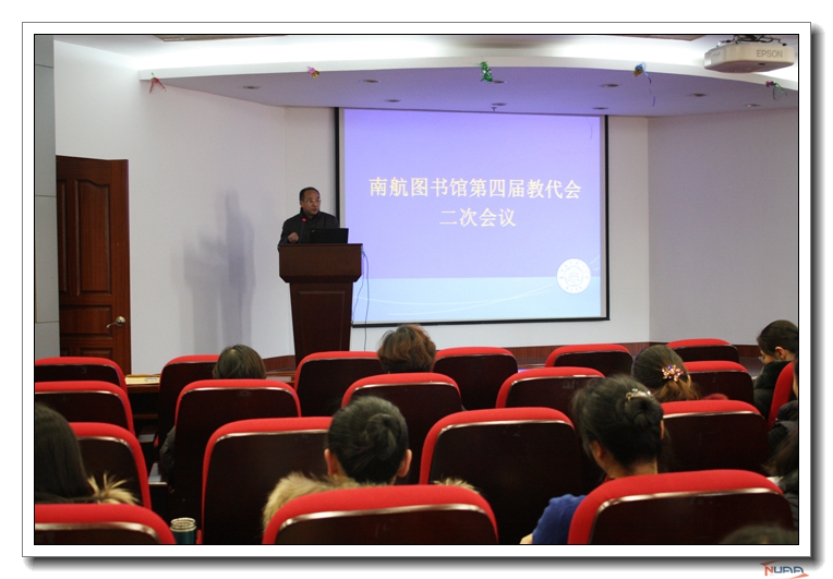 1月15日下午,图书馆四届二次教代会、工代会在明故宫校区馆4楼报告厅隆重召开,校工会常务副主席袁贵平,馆长叶志锋,书记高斌,副馆长杨会、杨兰芳,两代会代表及图书馆全体馆员参加了会议。 ![]() 会议由图书馆部门工会主席朱永武主持,高斌书记为大会致开幕辞,他代表图书馆领导班子对新一届工会为图书馆发展所做出的积极奉献表示感谢。提出开好这次大会,对于进一步发扬全馆职工的主人翁精神,加强图书馆民主管理,调动馆员的积极性,提升图书馆的服务品质,实现图书馆十三五的规划目标都具有深远意义。希望全体与会代表紧密联系图书馆实际情况,认真履行民主权利和代表职责,畅所欲言,献计献策,为图书馆今后的发展提供既实际又切实可行的建议和意见,共同为构建和谐团结的美好未来做出新的贡献。 ![]() 校工会袁副主席讲话,他充分肯定了图书馆近几年来所取得的成绩以及教代会、工代会所发挥的作用,他认为教代会和工代会是推进图书馆民主建设的重要举措,对馆内重大决策和民主管理有着重要意义,他还介绍了校工会近期的主要工作,传达了校工会有关文件精神。