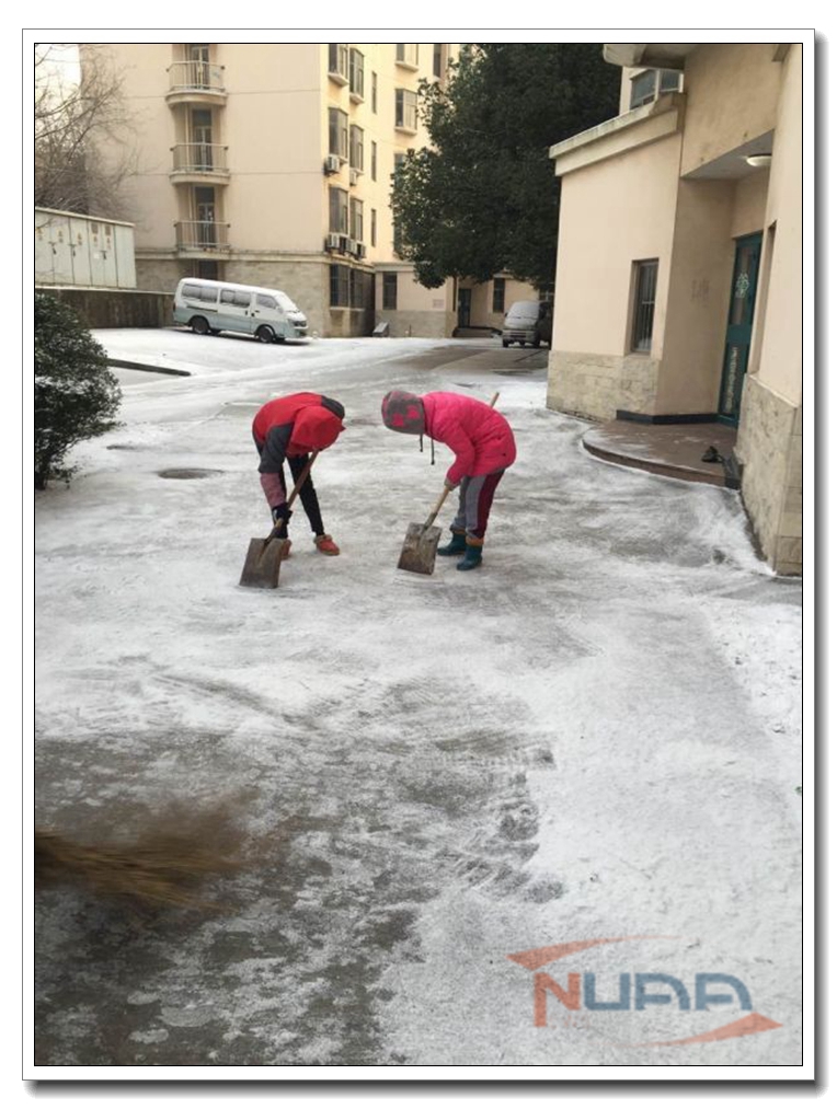1月23日,寒潮来袭,短短一夜,厚厚的白雪便覆盖了整个校园。虽然学校已经放假,但是还有许多师生留在学校里面继续学习和工作着,厚厚的积雪还是会给师生们出行带来困难。23日早晨,当绝大多数的人们还在暖暖的被窝中做着美梦,后勤集团以及将军路校区各单位的员工们扛着铁锨、竹竿、扫把、木铲等各种各样的工具,开始了清理校园和家属区主干道路面积雪的紧张工作,最大限度减少冰雪天气给师生出行带来的安全隐患。 ![]() 校长助理黄炳辉,保卫处副处长缪长宗、后勤集团副总经理周道贵等各单位领导负责人都及时赶到校园内开始指挥扫雪清理工作,校园服务中心校园服务中心在统筹应急物资的同时,积极对主干道进行排查,发现险情立刻排除,全体党员一个不缺,火速从家中赶到学校,扫雪铲冰;公寓服务中心早已制定好下雪应对措施,在楼栋内粘贴通知提醒学生们注意下雪天路滑,宿舍管理员保洁员们也及时在积雪出现时就把宿舍周围清理干净,铺上草席防滑;饮食服务中心员工全员上阵,做好值班食堂的周边防护工作,尤其是江宁和园餐厅,主要出入口在食堂北侧,冰冻较为严重,天还没亮,食堂主任便安排清理出了一条通行道路,并铺上草垫;物业管理中心也在第一时间清理开放的教学和办公楼宇主要通道的结冰,为了家属区教工的安全,社区保洁员、保安员一齐出动清理道路积雪;水电与维修服务中心启动冰冻应急预案,提前对校内水电设施进行巡检保修,防止冰冻天气的损坏。后勤校区就是后勤员工的战场,大家各司其职,确保在大批行人出行之前将道路打通,后勤服务工作不受影响。 后勤集团和校区在寒假前就按照学校要求制定了雪天应急预案,从20日夜开始,南京已经开始了降雪过程,集团下属各单位按照制定好的雪天应急预案和分工,实行通宵值班制度,及时关注雪情,有序地在校园内展开了清扫积雪工作。