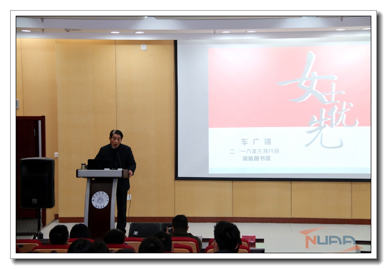 3月8日国际妇女节下午,由图书馆主办的以“女士优先——男性的礼仪与风度”为主题的“南航达人说”活动在将军路校区图书馆一楼报告厅火热举行。本期主讲达人为我校人文与社会科学学院车广锦教授。