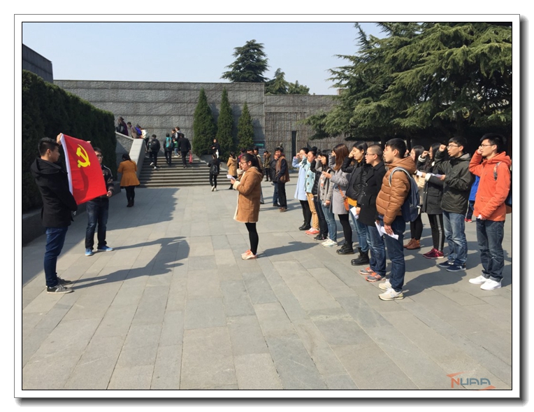 2016年3月12日,电子信息工程学院0413级第一、第二党支部及0414党支部新党员入党宣誓仪式在南京大屠杀遇难同胞纪念馆隆重举行。参加此次活动的有0413第一、第二党支部、0414党支部学生党支部书记以及全体学生党员。此次活动不仅对学生党员起到爱国主义教育的作用,更坚定了他们肩负起建设祖国未来的责任与信念。 ![]() 3月12日上午11时,全体党员到达南京大屠杀遇难同胞纪念馆,在南京大屠杀遇难同胞纪念碑举行新党员入党宣誓仪式。此次宣誓仪式由0413第一党支部张洁同学主持,全体新党员紧握右拳,面对鲜红的党旗庄严宣誓。朗朗的宣誓声铿锵有力,表达了新党员们的郑重承诺、坚定的信仰和激动而自豪的心情。宣誓结束后,同学们怀着敬畏之心自主参观了南京大屠杀遇难同胞纪念馆,铜质塑像和文字解说带我们走进那段痛苦屈辱的岁月,时刻提醒我们自身肩负的责任。 ![]() 此次宣誓仪式,旨在培养优秀学生党员,为党组织输入新鲜血液,为学生树立榜样,让更多的新党员融入党,在党的领导下不断进步,更好的为他人服务。同时,也有助于广大学生党员铭记入党誓词,增强党的自豪感、荣誉感,在日后的学习生活中自觉负担起光荣的责任与使命,为党的伟大事业做出应有的贡献。 ![]() |