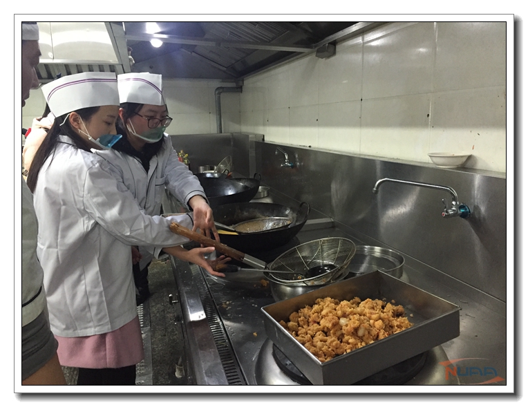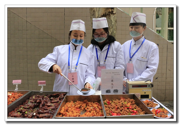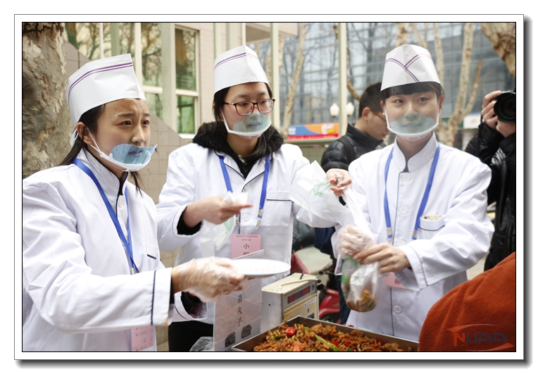 3月15日,南京航空航天大学举办了一场别开生面的厨艺比拼活动——同学们走进食堂的厨房,亲手制作美食“自产、自营、自销”,体验了一回当“厨神”的快感。当天共有十支学生队伍,代表南航两个校区的十个食堂参加了活动。 中午,各支参赛队在食堂厨师的指导下,精心制作了自己的菜品。比赛从下午三点开始,一道道由学生们自己制作的美食新鲜出炉, 现场有50位学生评委为这些菜品打分;同时,来尝鲜的同学络绎不绝。菜品种类繁多,有大盘鸡、牛肉卷、秘制风味烤翅、水果盆栽、哈密瓜切糕……