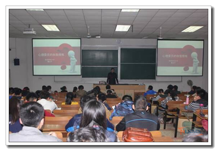 3月18日晚,南京航空航天大学“3.20”心理健康教育周暨2016年度心理气象员培训开幕仪式在将军路校区4101教室顺利举行。南京师范大学心理健康教育与咨询中心主任曹加平老师以及我校心理健康教育中心的负责老师和2015级全体心理气象员一起参加了本次活动。