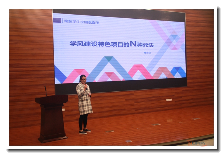 4月6日下午,伴随着熟悉的上课铃声,来自全校大一各个班的200多位班长、宿舍舍长在将军路校区参加了2016年度“班级研讨课”第一课。 本期班级研讨课主题为“如何做好学风建设特色集体创建”,研讨课首先播放了“班级研讨课一分钟视频”,动员学生申报 2016年度学风建设特色集体创建活动。随后,2015年度学风建设特色班级(宿舍)的4个精品项目进行了展示。来自航空宇航学院0114501班、能源与动力学院0214100班、理学院0814102班的班长,艺术学院博园101-01宿舍舍长,分别以 “问道茶座:‘寻道觅名师,墨卷共茶香’”、“优学微讲堂”、“学风建设新常态”和“圆梦之家”为主题,向同学介绍了开展学风建设项目的出发点、过程中的问题、解决办法,分享了项目推进中发生的故事以及实施经验。校园观察团以第三方观察者的身份,通过介绍“观察记录:学风建设的N种死法”,分享了学风建设特色集体的失败经验,引导学生引以为戒。在交流环节上,学生通过微信,将问题上传微信墙,与精品项目的发言人进行交流,进一步提高学生对学风建设特色集体创建的认识和理解。
