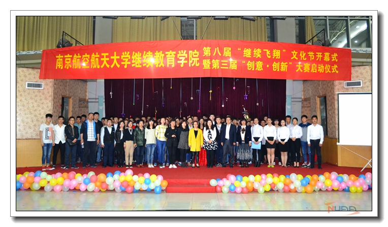 4月13日晚,由继续教育学院团委主办,院级五大学生组织联合承办的第八届“继续飞翔”文化节开幕式暨第三届“创意·创新”大赛启动仪式在明故宫校区老大学生活动中心隆重举行。院党委副书记涂志宏、院团委负责人、全体辅导员、班主任以及学生共计三百余人参加了开幕式。 本次开幕式分为“启动仪式”和“文艺汇演”两个部分。炫酷热闹的舞蹈《bang bang bang》拉开了序幕。涂志宏致辞。她指出,“继续飞翔”文化节活动是学院文化建设的重要平台,是学生培养、教育的载体,是学生自我服务、自我管理、表现自我、成长自我的舞台;一年一度的“继续飞翔”文化节已成为学院的文化建设品牌活动。她强调在活动中要遵守公德、遵守规则、严于律己、礼貌待人,养成良好的行为习惯,做文明的大学生。