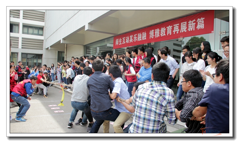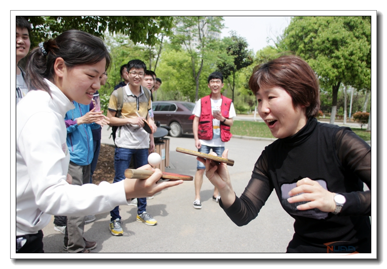 4月22日中午,理学院“1+4阳光导师活动月”之趣味运动会在将军路校区拉开帷幕,一幕幕师生互融的生动画面映入眼帘。 此次运动会包括“拔河”、“集体跳绳”、“单手拖乒乓球跑”、“双人夹气球跑”四大项目。比赛过程中,每一名师生激情洋溢,热情高涨,现场欢呼声、加油声、掌声、笑声融成一片。 尤其是拔河比赛,所有人都摩拳擦掌,全力以赴。经过几轮的淘汰赛之后,最终2012级本科生组成的团队与教师团队展开激烈的终极PK,参赛师生们都卯足了劲,现场场面异常火热,呐喊助威声迭起,将比赛一次次推向高潮,最终老师队以2:1的成绩取胜。跳绳比赛由女生加两个男生组队,每组需要在90秒的时间内排队接连通过。尤其是老师队矫健的动作、默契的配合,赢得了同学们阵阵的喝彩鼓掌,最终老师队以最高成绩完胜比赛。运乒乓球比赛和趣味夹气球跑项目中,师生齐心协力,笑声不断,掌声连连。整场活动中,老师们展现了课堂之外的活泼、亲切的一面,拉进了与学生之间的距离。很多老师和同学在项目结束后欢笑交谈、拍照留念,现场洋溢着欢乐和谐的气氛。
