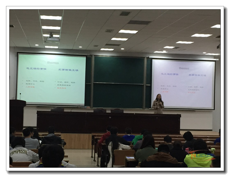 2016年4月27日,电子信息工程学院邀请校学生处就业办沈雪萍老师,在D1 213为2013级准毕业生们讲解职业生涯规划课程,为大家分析了大三下学期需做的职业生涯规划准备工作,强调了规划和实践的重要性。