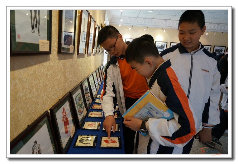 开幕式结束后,大家进入了展厅进行参观。本次展示分布在一楼、二楼两层楼。其中,一楼以中国传统文化元素为主。栩栩如生的龙、虎,展翅欲飞的蝴蝶,生动的中国古代文化故事……艺术家们精湛的技艺赢得了在场的师生们高度赞扬。二楼以现代生活元素为主,南京城的各处风景剪纸让大家啧啧称奇。其中,动画片《海绵宝宝》、《熊出没》等流行动画中的人物剪纸,更是吸引了不少学生驻足欣赏。与此同时,二楼还设置了现场制作环节,同学们认真欣赏了艺术家们制作的过程,更有不少同学动手参与其中,制作了自己喜欢的图案,体验了一回剪纸的乐趣。