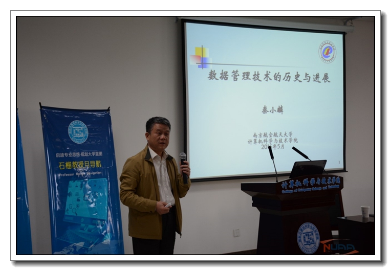 5月10日下午,计算机学院“石榴教授月导航”第二讲在学院楼113报告厅举行。本次讲座邀请到了数据管理与知识工程研究所所长秦小麟教授主讲,题目为“数据管理的历史和现状”。大一辅导员刘爽主持了此次活动,学院近200名大一学生参加。 ![]() 讲座中,秦小麟教授讲述了数据管理的发展史,使得同学们对数据库有了简单的了解。“效率才是最重要的”,秦教授指出:“数据库做出来的目的是为了让用户感到更加方便、快捷,所以效率一定要摆在首位”。为了使同学们体会到数据库的重要性,秦教授列举了四位图灵奖获得者的主要研究成果,以他们的成就来突出数据库的不可或缺。同时,讲述了数据库在今后的应用前景,在他看来:随着数据的不断增加,基于云平台的大数据分析必不可少,今后的数据库,一定有更加广泛的应用。 讲座之后,秦小麟教授与现场学生进行了互动交流,对同学们提出的“数据库的发展基于数据大爆炸时代,这种时代还能持续多久?对于我们老百姓来说,是否需要这么大的数据库”、“数据库存储介质是什么,今后还将得到怎样的发展”、“影像资料能否进行更大程度上的压缩”等问题一一作答,他希望同学们能够保持爱提问、会提问的习惯,欢迎同学和老师们进行交流。