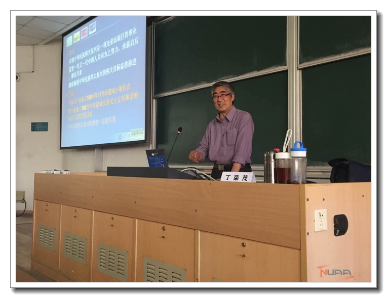 2016年5月11日,校关工委常务副主任丁荣茂老师在江宁校区4102教室为能源与动力学院2015级全体学生开展“中国梦,南航梦,成才梦”主题讲座。 讲座伊始,丁荣茂就用能源与动力学院的优秀院友林左鸣引出对“才”的理解:能吃苦、身心健康、有坚定的意志和强烈的社会责任感。之后,从习近平总书记提出的“中国梦 青年梦”为思路出发点,与学生们探讨中国梦,明确广大青年被时代赋予的历史责任,鼓励学生在中华民族的伟大复兴中努力实践。 紧接着,丁荣茂从十三五脱贫攻坚目标的角度回顾了中国共产党发展历史,引出了南京航空航天大学60年来的进步历程,为同学们贯彻了“负重奋进、献身国防、唯实创新、旨在超越”的南航精神,并讲到我们这一代人的南航梦:为学校在建校100年时成为具有国际影响力的高水平研究型大学而努力奋斗。南航是在明故宫的废墟上建起的伟大的科学殿堂!这句话更是引起了阵阵掌声,发扬国防军工精神,形成南航文化特质是我们需要努力的。