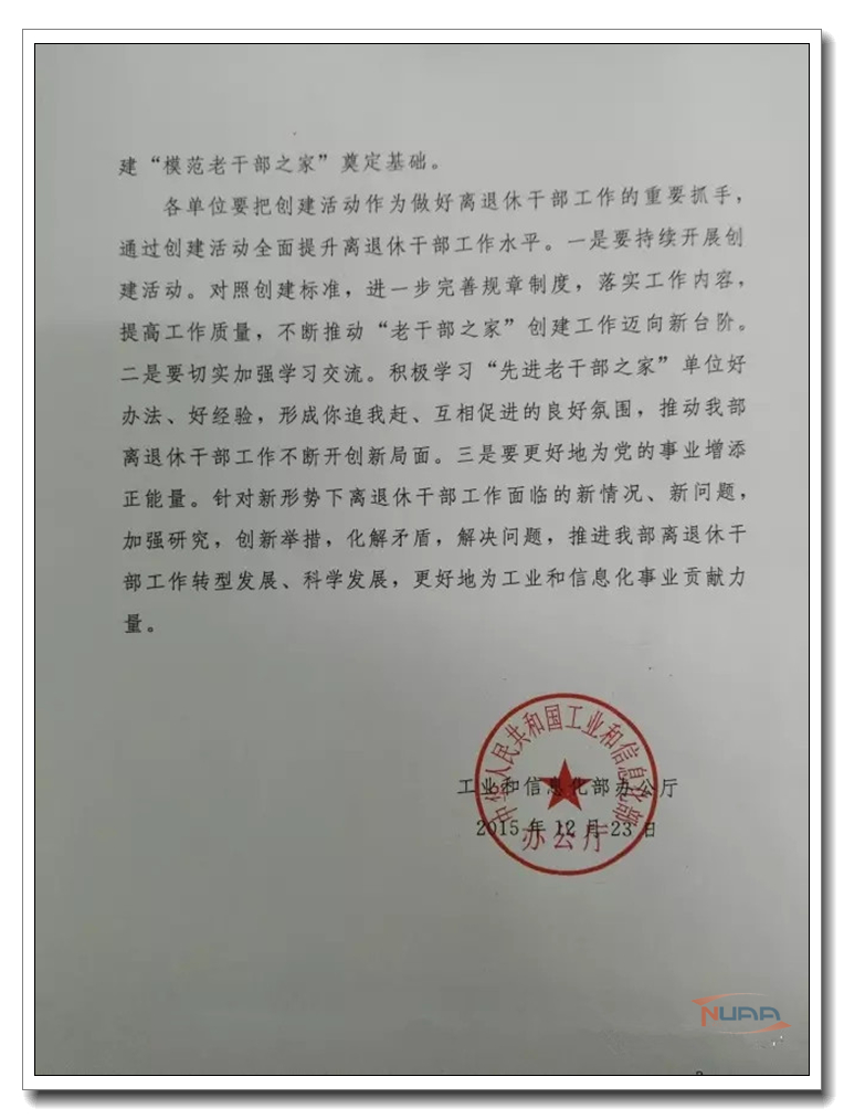 工业和信息化部近日发文,正式授予我校等13家工信部所属单位“先进老干部之家”荣誉称号。