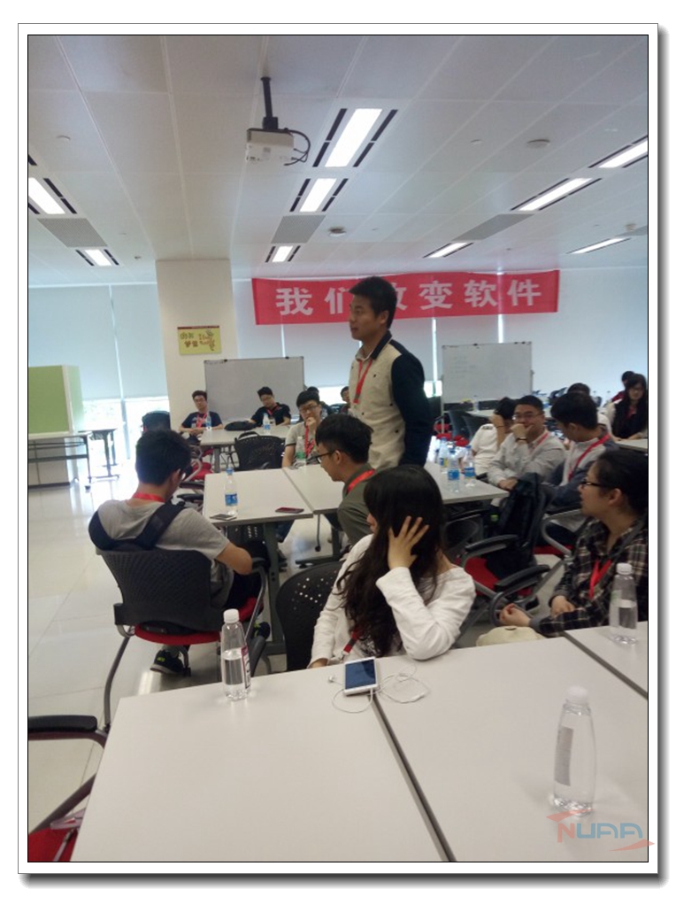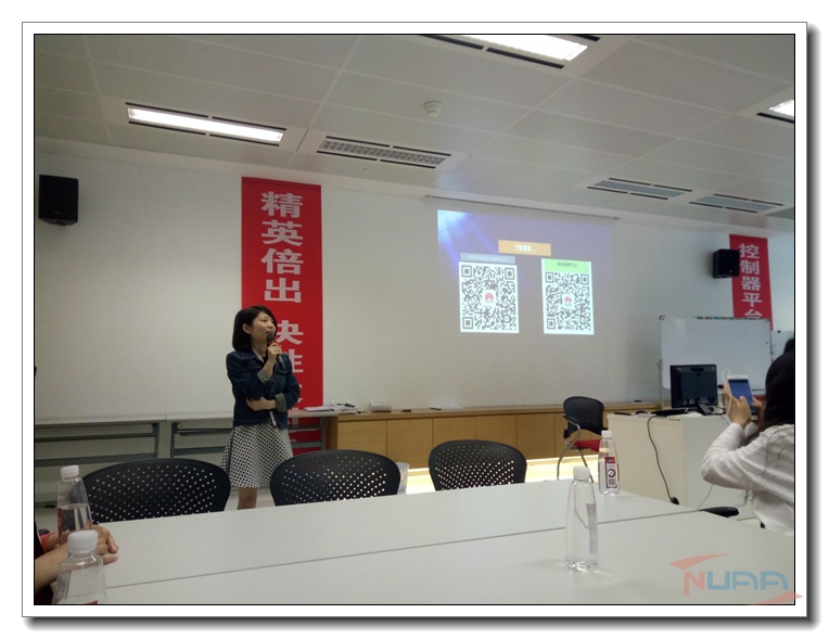 华为印象初体验之后,同学们便与华为的工作人员进行更进一步的交流。在培训会议室,华为南研所研发部的老师向同学们介绍了华为总体发展概况和华为南研所的发展情况。两位优秀的南航校友结合自身的职场经历,分享了他们在华为的故事。随后,同学们就企业的具体岗位素质需求、职业发展路径、员工的学习培训等问题与华为的HR和校友们进行了互动交流。