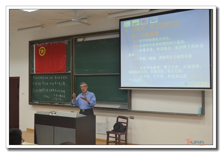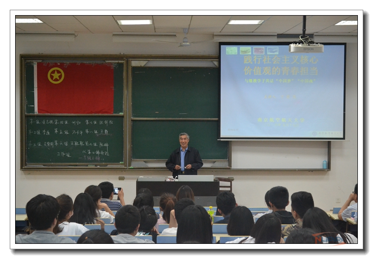 5月17日晚,校关工委常务副主任丁荣茂在我校明故宫校区1为继续教育学院第三期团校学员做了一场题为“践行社会主义核心价值观的青春担当——与继教学子共话‘中国梦 中国魂’”的专题讲座,这也是该学院第三期团校课程的第四讲课程。 丁荣茂从学院的文化氛围营造、学院的黑板报常换常新谈起,肯定了学院学子勤勉、认真、踏实的优良品质,指出了社会主义核心价值观与国家、社会、个人戚戚相关,践行社会主义核心价值观是每个人的责任和担当。他通过习近平总书记的重要讲话以及众多正反案例的对比,阐述了价值观与社会主义核心价值观的含义,引导青年人正确谋划人生,树立正确的价值观。他通过近年来所搜集的继教院优秀学子的事迹,激励和鼓励在座的学员们践行社会主义核心价值观要从现在做起,从自己做起,使社会主义核心价值观成为自己的基本遵循,并且身体力行,做到勤学、修德、明辨、笃实。