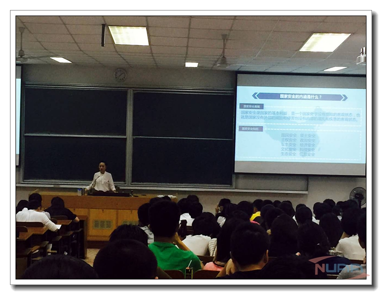 2016年5月25日晚,南京航空航天大学航天学院在江宁校区开展了题为“国家安全,关系你我”的主题月讲评,主讲人为航天学院辅导员刘洁老师。航天学院大一大二大三的全体同学参加了这次月讲评。 首先,刘洁老师开门见山,点出了此次月讲评的主题——国家安全。接下来全体同学观看了一部宣讲国家安全的视频,刘洁老师接着这部视频从国家、公民等几个维度向讲解了我们身边的国家安全,也引发了在场同学的思考,一位同学举手回答了他的想法,向大家讲述了他所认为的国家安全。 接着,辅导员向大家讲述了发生在哈尔滨某高校一在读学生被境外人员策反的例子,告诫大家要树立是非观,不被眼前的非法利益所吸引,不被境外势力洗脑,不做损害国家安全的事情,时时刻刻提高警惕,以免断送自己的未来、破坏自己的家庭。 第二阶段,刘洁老师又从国家层面讲解了我们面临的国际局势、潜在的危险和挑战。她还特别敬告同学们要理性看待网上的言论,特别是要禁止翻墙这种行为,对于境外一些反动势力、恐怖组织的洗脑活动要擦亮双眼。