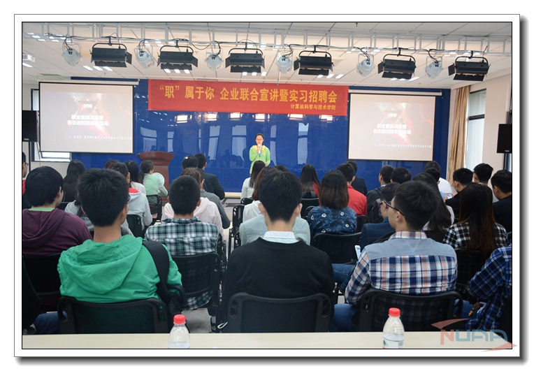 5月21日上午,由计算机学院主办的“职”属于你企业联合宣讲暨实习招聘会在计算机学院515多功能厅举行。本次招聘会,学院共邀请到五家计算机相关企业,分别是东软集团股份有限公司,联迪恒星(南京)信息系统有限公司,壹进制信息技术有限公司,京东方光科技有限公司和江苏省未来网络创新研究院。此次招聘会吸引了来自全校近两百名学生参与。 ![]()
