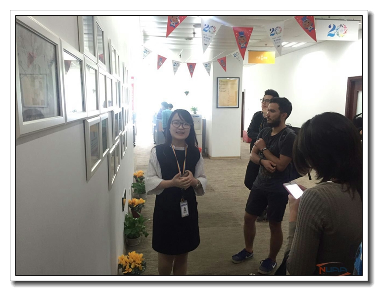 师生们到达后受到公司接待人员钱经理及其同事的热烈欢迎,随后参观了焦点科技公司,并与HR经理进行了座谈。HR经理向来访师生介绍了企业的规模、文化和发展方向。双方进行了友好互动的交流。