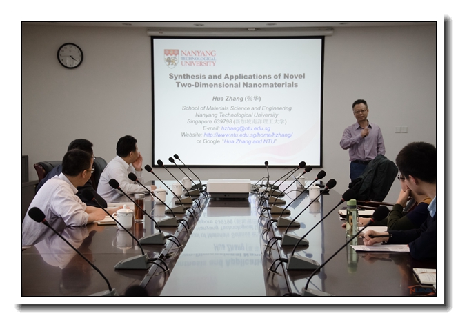 应我校机械结构力学及控制国家重点实验室朱孔军教授邀请,新加坡南洋理工大学材料科学与工程学院张华教授于2016年5月22日至23日访问了我校,并于5月23日为我校师生做题为“Synthesis and Applications of Novel Two-Dimensional Nanomaterials”的学术报告。报告内容丰富、生动、精彩,介绍了新型二维材料的重大研究意义、最新研究成果及未来发展趋势,对我校相关科研工作具有借鉴作用。同时,还结合自己多年的研究经历,讲述了研究生培养与学生、科研工作选题与写作若干问题。朱孔军教授主持了此次报告会。 ![]() 访问期间,张华教授在朱孔军教授的陪同下参观了机械结构力学及控制国家重点实验室,就双方共同关注的新型功能材料制备等热点问题与朱孔军教授课题组进行了探讨和交流,并开展了指导研究和学术讨论等一系列工作,就人员交流、研究生联合培养和开展进一步的科研合作等问题与有关负责人达成了初步合作意向。此次交流访问对于增强我校与新加坡南洋理工大学之间开展学术交流以及合作研究将起到积极的促进作用。 张华教授分别于1992年及1995年在南京大学获得学士和硕士学位,1998年于北京大学获得博士学位,师从于刘忠范教授;1999年1月加入比利时鲁汶大学Frans C. De Schryver教授团队,任副教授;2001年7月加入美国西北大学Chad A. Mirkin教授团队,任博士后研究员;2003年8月加入美国NanoInk公司,任研究科学家;2005年11月至2006年7月加入新加坡生物工程和纳米技术研究所任资深研究科学家;之后加入南洋理工大学材料科学与工程学院,任助理教授,2011年3月任副教授,2013年9月任全职教授。他出版了5本专著,授权63项发明专利(其中8项美国专利),在Science, Nat. Chem., Nat. Commun., Sci. Adv. , Chem. Soc. Rev.等期刊上发表了330余篇论文,其中138篇文章发表在影响因子超过10的期刊上;被引次数超过25500次,高被引论文78篇。在国际学术会议或著名大学做邀请报告180余次。张华教授目前担任Chem. Soc. Rev., ACS Nano, Chem. Mater., Nanoscale, Small等国际著名学术期刊编委或顾问。张华教授荣获的主要学术奖励包括2011年南洋理工杰出研究奖,2012年Small青年创新奖。
