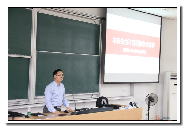 为激发学院本科生参与学术科研的热情,提升求实精神、创新能力等素质能力,5月27日,经济与管理学院14级邀请教务处副处长朱建军、教务处实践培养科科长袁磊开展了“本科生也可以玩转学术科研”的主题宣讲会。 ![]() 宣讲会中辅导员庞依达以“东大学霸情侣入选最具影响力毕业生”为切入,阐述了年级近两年的自由探索项目参与情况,分析了年级同学在学术能力提升方面的现状与问题。袁磊老师结合着自己的求学经历,建议同学们在学习专业知识的同时,注重提升学术科研能力。他介绍了学校为同学们搭建的创新创业训练计划、自由探索项目等八大工程,并以自由探索项目为例,详细的介绍了项目运作周期以及需要注意的事项,鼓励同学们通过科创QQ群等平台,加强与项目管理者、项目参与者的交流。朱建军老师则从学术科研能力的地位、科研经费的管理等角度和同学们进行了交流。在互动阶段,两位老师针对不同项目的立项难易程度、指导教师选择等问题进行了详细的回答,幽默的语言给同学们留下了深刻的印象,更激发了同学们参与学术能力提升的热情。 ![]() 参会的同学都表示了解到更多提升自我能力的平台信息,拉近了自己和学术科研的距离。周家旺同学表示“学术科研原来没有我们想象的那么高门槛,两位老师的宣讲鼓励了我们去做那些我们原本不敢想的事情,让我们了解到更多锻炼自我、提升专业素养的平台。” ![]() |