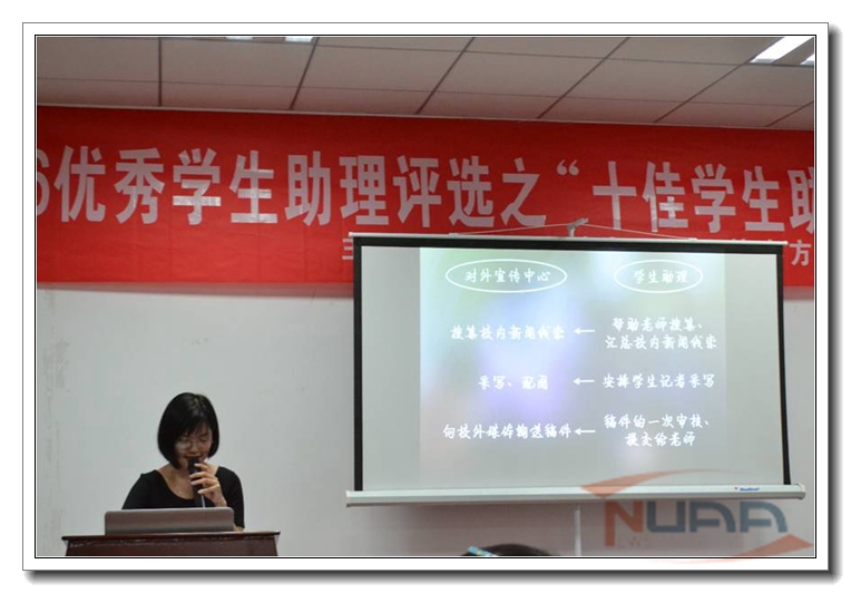 6月13日晚,将军路校区大学生发展中心414室举办了2015-2016年度十佳学生助理答辩评审会。来自两个校区各勤工助学岗位上的17名学生助理参与了本次答辩,学生助理学校执行主任卢婕颖同学担任主持。学生处赵铮、图书馆赵立芹、校团委芮康康以及将军路校区管委会夏冰出席了答辩会,并与来自15个科室的学生助理代表共同作为评委参评。 ![]() ![]() 本次答辩会旨在寻找勤工助学岗位上的优秀勤助人,17位学生助理也与大家分享了自己在勤助岗位上的精彩体验。他们之中,有来自学生资助管理中心的助理,负责全校勤工助学报酬的统计检查,不曾错漏;有来自艺术指导委员会的助理,缝补衣服准备演出物资,做好后勤工作;有来自校团委的助理,事事亲力亲为敢于尝试,让自己成为不可或缺;更有来自就业办即将毕业的助理,不遗余力做好与企业的对接,在岗位上挥洒热爱。通过这些优秀助理的分享,更让我们看到,在勤工助学岗位上的同学们不但对工作认真负责,在岗位上的锻炼也提升了他们的个人能力,帮助他们在其他的舞台上同样大放光彩。 答辩环节结束后,四位老师为前期评选的三星级学生助理、五星级学生助理代表颁发奖状,并与现场选出的十佳助理合影留念。 附:十佳学生助理名单公示: 宁顺刚 学生处学生资助管理中心 吴宝琪 党委宣传部文化站 刘寅遐 校团委 杨颖钰 艺术指导委员会 马创业 明故宫图书馆 党嘉强 教务处教材科 宫文慧 学生处心理咨询中心 王璐璐 将军路校区管委会党政办 王平平 体育部游泳馆 彭辉 学生处就业创业指导服务中心 |