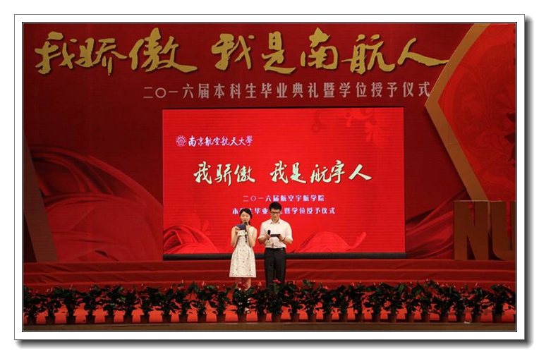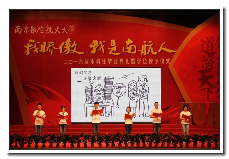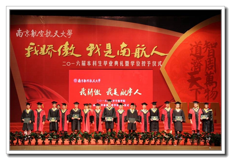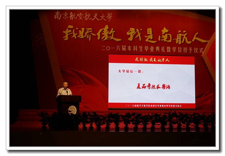 ![]() 6月19日上午,“我骄傲 我是航宇人”2016届本科生毕业典礼暨学位授予仪式在明故宫校区大学生活动中心。航空宇航学院院长夏品奇教授、党委书记孔垂谦教授等学院党政领导及学位委员会教授、班主任代表、辅导员、家长代表以及497位学院毕业生出席了毕业典礼。 时光物语,共忆大学1380天 ![]() 在一段充满青春回忆的倒计时开场视频后,由毕业生自编自导自演的诗朗诵《我的大学1380天,树已成荫》带领全场的毕业生们回忆起大学四年的点点滴滴,从学会独立到学会选择,过往的经历如昨天历历在目。整个朗诵的背景均是由学院毕业生魏晨瑶的手绘创作,毕业生们伴着台上深情朗诵,回想着自己有泪、有笑、有心酸也有奋斗的大学生活,对母校对学院的难舍却涌上心头。 成长分享,我们的大学成就 ![]() 来自飞行器设计与工程专业等学院5个不同专业的6名同学也带来了自己和班级精彩纷呈的成长故事。他们讲述了自己从羞于表达到自信接待上千名观众,甚至成为了航空航天馆讲解团团长;从迷茫到坚定选择科学道路,最终以第一作者发表SCI获得直博资格;从受助感恩到倾力助人,即将返回大西北,成为了南航第十八届支教团的一员;从曾自认为只能做“搬砖工”到在学校平台上不断历练,最终登上全国顶级秀场;从只知勤、学苦学到被学院推荐出国交流,拥有了博览世界的机会......四年,全体16届毕业生们在学校学院提供的平台上,提升素质能力成就自己的梦想,自豪而骄傲成为一名“南航航宇人”。 师恩难忘,感谢“最”老师 ![]() 独属于航宇16届毕业生的青春故事,正是有了老师指引才能够实现梦想。典礼当天同学们也专程请来了他们心目中“最绅士”、“最爱玩”、“最严格”、“最童真”、“最絮叨”的老师,并用手中的鲜花向他们表达最深的敬意,其实在这些“最”字背后是每一位老师的身体力行的悉心训教,余雄庆、吴惠祥、武艳、张丽、陈少林、史志伟老师也代表所有为同学留下宝贵人生财富的老师们,为毕业生送上临别寄语。而陪伴同学们成长四年的15位班主任也接受了在场所有毕业生最热烈的欢呼与致敬。 毕业献礼,我与学院有个约定 ![]() 回报母校学院恩情最好的办法,就是不负学院培养。当天,学院16届毕业生用自己四年所学——毕业设计作品作为特殊的礼物献给学院,以感谢学院的培养。临别之际,全体航宇毕业生以班级为单位,郑重签订了属于2016届航宇毕业生的承诺。大学生成就奖获得者王红兵同学代表全体毕业生庄严承诺,并向夏品奇院长郑重递交了承诺书,承诺将目标坚定,努力进取,心怀感恩,回报社会,请学院放心。 “放心去飞”,走好社会的第一步 ![]() 在院长夏品奇教授寄语2016届毕业生的环节中,从航空航天事业建设者们 “白+黑”、“5+2”的奋斗的精神到享受工作快乐的平和心态,夏院长嘱咐毕业生们要用崇高的理想、奋斗的精神、踏实的苦干、平和的心态,迎接一个有价值、有意义的人生。最后一段《放心去飞》的班主任视频温情满满,一句句动情的话语承载了老师们的牵挂与叮咛,让在场的毕业生为之动容。 毕业典礼之后是隆重的学位授予仪式,学院领导及学位委员会的教授们身着导师服,为在场的全体毕业生一一扶正流苏并合影留念。 相信未来的日子里,航空宇航学院2016届毕业生,一定勇往直前不负老师的期望,认真走好以后的每一步,努力成为一名高素质公民和未来开拓者,用激情和才华续写南航辉煌。 |
