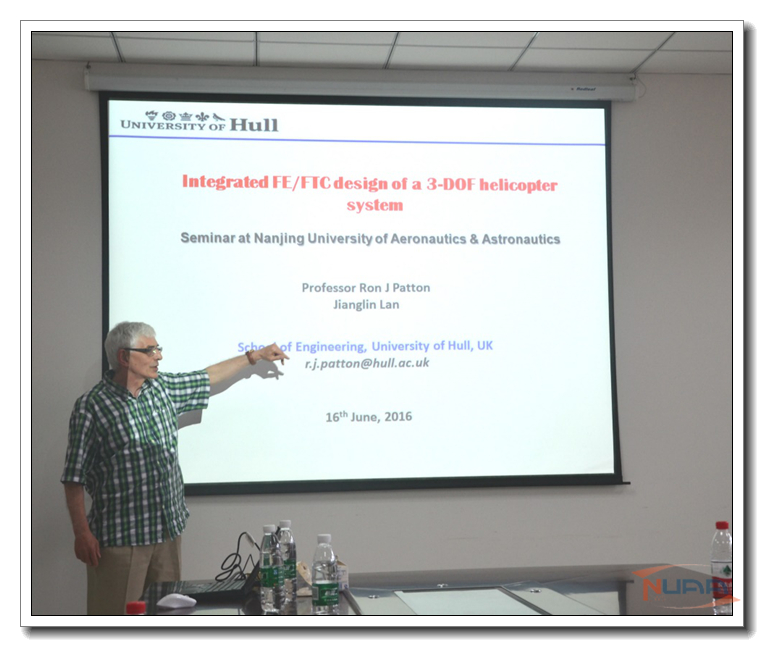 6月16日下午,IEEE Fellow,英国赫尔大学Ron J Patton教授应邀在将军路校区自动化学院4楼会议室做题为“Integrated FE/FTC design of a 3-DOF helicopter system”的学术报告。会议由自动化学院院长姜斌教授主持,自动化学院部分师生参加了报告会。
