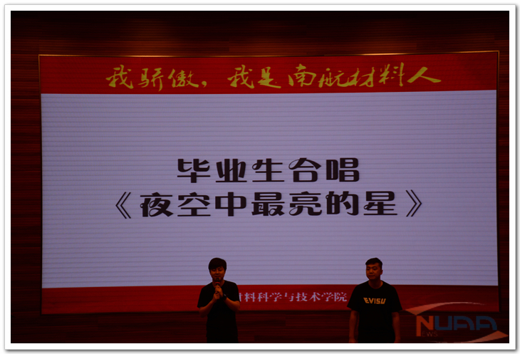 在学位授予仪式前,毕业生代表合唱——《夜空中最亮的星》。一首温情的歌,点燃毕业生们心中的情。时光荏苒,光阴似箭,回首四年,留下的是满满的感激与不舍,用一首歌告别今天的母校,送给即将远行的自己。