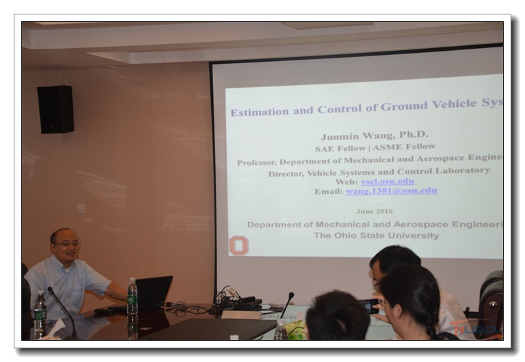 2016年6月21日上午,美国俄亥俄州立大学王俊敏教授应邀在江宁校区自动化学院4楼会议室,做了“Estimation and Control of Ground Vehicle Systems”为题的学术报告。会议由自动化学院院长姜斌教授主持,自动化学院部分师生参加了学术报告。 在两个小时的学术报告中,王俊敏教授简单介绍了美国俄亥俄州立大学和他科研的试验平台。然后,王教授介绍了他团队近年来的科研成果,并将成果从汽车的减少排放、轮式驱动的高效控制以及车辆系统安全等方面,对其进行详细的介绍。最后,重点介绍了车辆系统中的故障检测与诊断。 报告结束之后,大部分师生关于故障检测与诊断问题,从车辆系统性能、车辆系统建模以及车辆系统故障诊断的方法等进行了详细的交流和讨论。 附: 报告人简介 Prof. Junmin Wang is a full professor in mechanical engineering at Ohio State University. He received the B.E. in Automotive Engineering and his first M.S. in Power Machinery and Engineering from the Tsinghua University, Beijing, China in 1997 and 2000, respectively, his second and third M.S. degrees in Electrical Engineering and Mechanical Engineering from the University of Minnesota, Twin Cities in 2003, and the Ph.D. degree in Mechanical Engineering from the University of Texas at Austin in 2007. Prof. Wang is the founding director of the Vehicle Systems and Control Laboratory whose major research interests include control, modeling, estimation, and diagnosis of dynamical systems, specifically for engine, power train, after treatment, hybrid, flexible fuel, renewable energy, (electric) ground vehicle, transportation, sustainable mobility, and mechatronic systems. Dr. Wang is the author or co-author of more than 235 peer-reviewed papers including 115 journal articles and 11 U.S. patents. He serves as a Senior Editor/ Editor/Technical Editor/Associate Editor for various international journals. He is the Chair of ASME Automotive and Transportation Systems Technical Committee. Prof. Wang is a recipient of the Ohio State University Harrison Faculty Award for Excellence in 2015, National Science Foundation CAREER Award, SAE International Vincent Bendix Automotive Electronics Engineering Award in 2009, and Office of Naval Research Young Investigator Award in 2009. He is an SAE Fellow and ASME Fellow. |